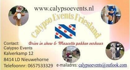 Wij heten U van harte welkom op onze vernieuwde site van Calypso Events. Wij zijn een leuke groep mensen die graag voor je willen optreden met onze mascottes. Wij zijn ook actief bezig om Sinterklaas & Zijn Pieten te helpen. De Drive-In Show wordt verzorgd door Anne de Jong (eigenaar van Calypso Events). Onze prijzen zijn in overleg. Voor meer inlichtingen kunt u ons bellen op 0612663842 of calypsoevents@outlook.com