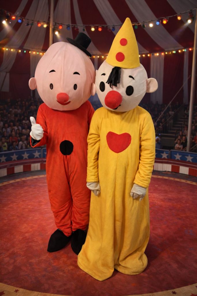 Awel nee, als je denkt dat je alles hebt gehad, komt Belgiƫ naar je toe. Zijn vaak op tv te zien, maar we schijnen ineens echt te zijn. Bumba en Bumbaloo zijn te boeken voor uw bedrijfsfeest, verjaardag, kinderfeest, enz. Prijs is in overleg en reiskosten worden mee verrekend. Wij lenen of verhuren geen pakken zonder onze eigen mensen erin.