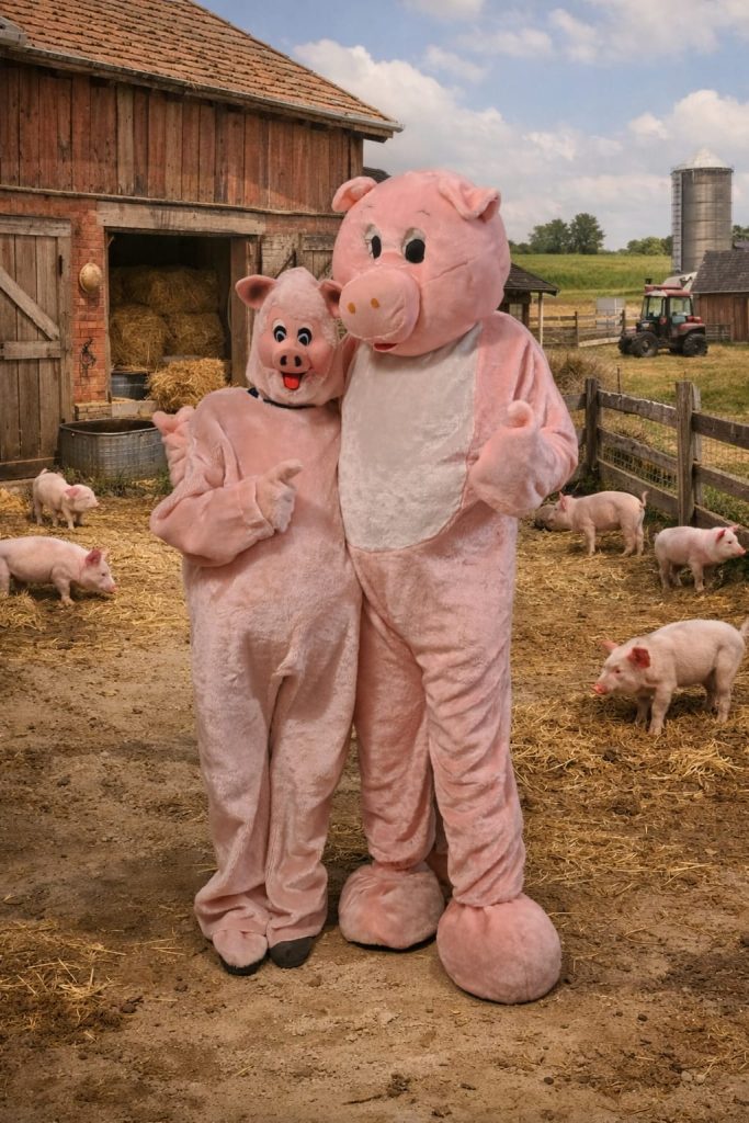 Hoi, wij zijn Knorretje en Big. Wij zijn 2 heel ondeugende varkens die graag bij je langs komen op jullie bedrijfsfeest, braderie, verjaardag, enz. Prijs is in overleg en reiskosten worden verrekend. Wij lenen of verhuren geen pakken zonder onze eigen mensen erin.